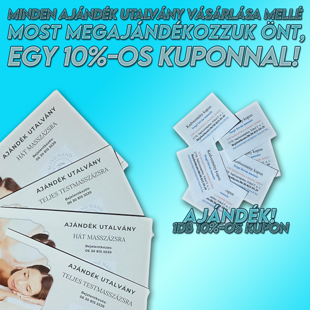 Karácsonyi ajándék2023. December 6., Wednesday AJÁNDÉKOZZON KARÁCSONYRA MASSZÁZS UTALVÁNYT ÉS AJÁNDÉKBA KAP HOZZÁ EGY 10%-OS KUPONT!!Tovább0 komment